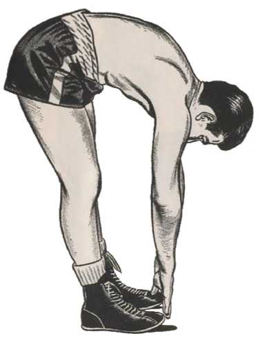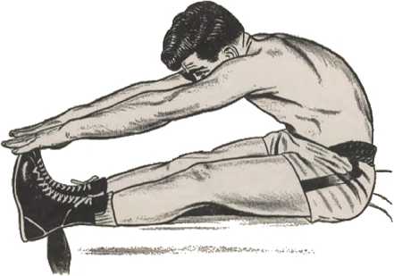 Медленно наклонись вперед и коснись руками ног, руки вытянуты во время движения. Затем медленно вернись в исходное растянутое положение. Если ноги задираются, когда ты делаешь это упражнение, попроси кого-нибудь подержать их. Продолжай делать подъемы корпуса, пока не устанешь. Сначала будет трудно, но через несколько недель ты сможешь сделать 25-30 повторений, потом доберешься до 50-100.