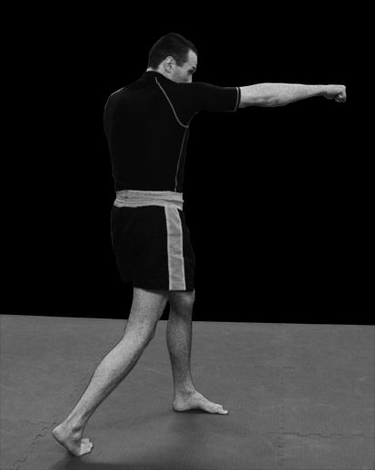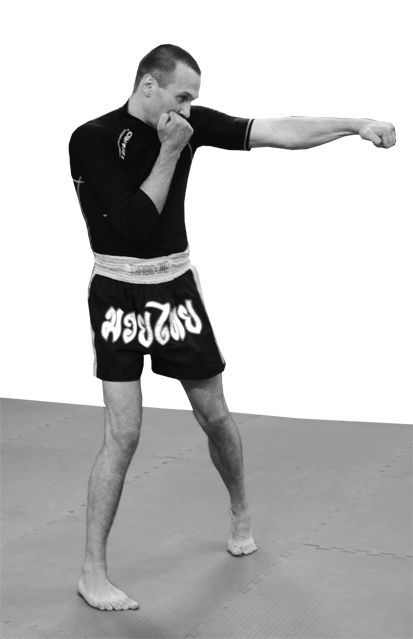 Прямой удар рукой, находящейся сзади, – это уже тяжелое вооружение, и он должен вылетать, как из пушки. Прямой удар с задней руки очень мощен и способен при хорошем попадании нокаутировать противника. Он обычно наносится в серии ударов после нескольких ударов с передней руки. Целями для прямых ударов могут служить челюсть, нос, брови, грудь, печень и т.д.