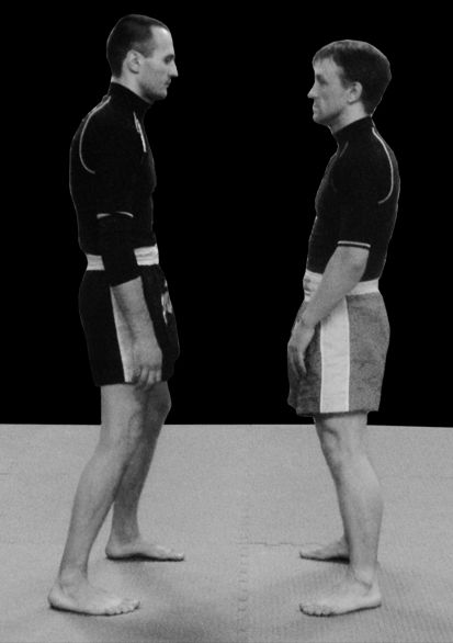Левая рука наносит хлыстообразный удар костяшками сжатого кулака по дуге разгибом локтя в голову противника, а затем быстро возвращается в исходную позицию (рис. 88, 89). По корпусу в руку должна пройти волна до кулака для усиления мощи удара. В этом ударе наибольшее внимание следует уделять скорости и внезапности его нанесения, кроме того, нельзя выпрямлять руку до конца, чтобы не получить травму локтевого сустава. Уракен должен быть подобен взрыву, в идеале противник не должен вообще на него среагировать. На рис. 90—92 показан пример атаки уракеном с предварительным сбивом впереди стоящей руки противника.