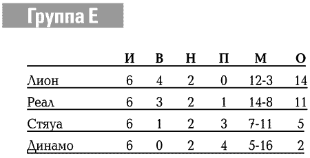 Не дотянули до победы ни выезд со «Стяуа» — 1:1, ни домашнюю игру с немотивированным «Реалом» — опять вели 2:0, но «Зубастик» Роналдо ответил на 86-й и 88-й минутах! Злой рок какой-то — читай, мастерство. А могли претендовать хотя бы на третье место…