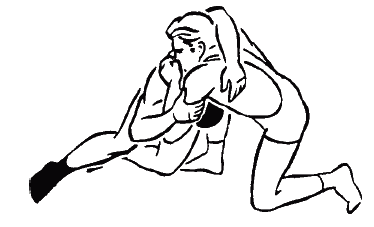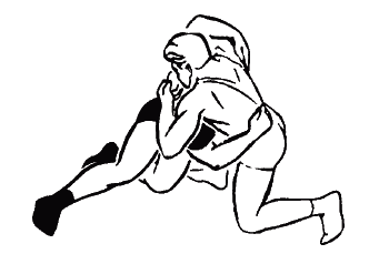 Когда атакующий, осуществив захват, начинает скручивать атакуемого влево, последний выставляет правую ногу на ступню в сторону поворота, несколько отходит от атакующего и сопротивляется ему. Затем контратакующий быстро захватывает правой рукой противника за туловище и, не давая полностью отключить свою захваченную левую руку, толчком ногами и туловищем сбивает его перед собой и дожимает, применив захват шеи и туловища.