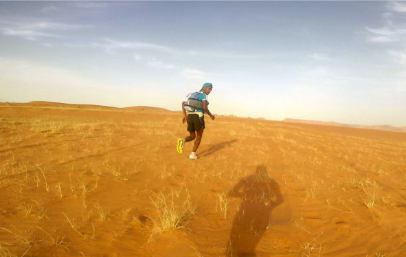 Но мы не сдаёмся и пытаемся бежать. Ноги проваливаются в песок, пульс зашкаливает, мы материмся, переходим на шаг и снова пытаемся бежать… Всё-таки песок – не наша стихия. И тут, как бы преподнося нам урок по технике бега в пустыне, мимо проносится Рашид, лидер гонки.