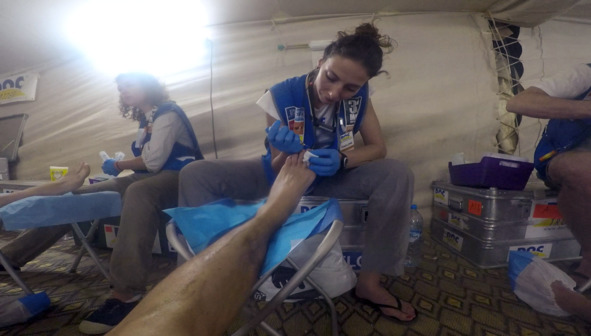 Забираем свои 4,5 литра воды и ковыляем в пустой лагерь. Реально пустой – кроме нас тут сидит где-то человек 20 из 1200. С трудом нашли свой бивуак и упали. Но спать нельзя: обязательно нужно сделать ещё два дела.