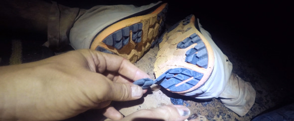 Сегодняшние потери – мозоль на мизинце и один почерневший ноготь. Не страшно. По местным меркам – отделался испугом. А вот мои «сапоги-скороходы» Hoka пострадали сильнее: подошва отклеивается клочьями. Ну, думаю, на марафон хватит, а потом – на свалку. А вот теперь можно залезть в спальник и уснуть. Если получится.