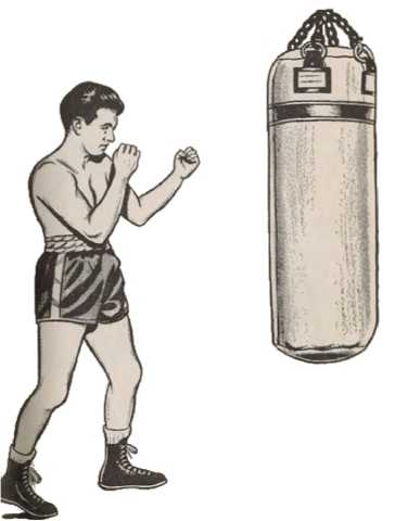 На тяжелом мешке отрабатываются удары по корпусу и в голову, на пневмогруше, подвешенной на уровне головы, вырабатывается чувство времени, скорость и умение попадать в движущуюся цель, а также доводится до автоматизма очень нужная техника отбива тыльной стороной кулака (наотмашь).