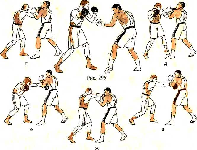 ж ) отталкиваемся правой ногой и, одновременно с шагом левой ногой вперед, наносим ответный боковой удар правой рукой в голову противника;