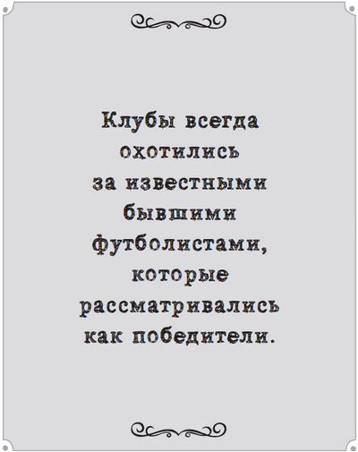 Когда клубы нанимают главных тренеров исходя из того, что они были футболистами, это рассматривается как недальновидность в первую очередь фанатами со склонностью к аналитике, а также некоторыми, имеющими отношение к игре. «Это культура английского футбола, и это всегда было так, – говорит Энди Кейл, руководитель департамента развития игры и исследований Футбольной ассоциации. – Клубы всегда охотились за известными бывшими футболистами, которые рассматривались как победители. В последние десять лет некоторые президенты клубов немного поумнели, но очевидно, что это займет немало времени. Тем временем этот подход к выбору главных тренеров обладает разрушительным эффектом. Просто посмотрите на ежегодное количество увольнений»4.