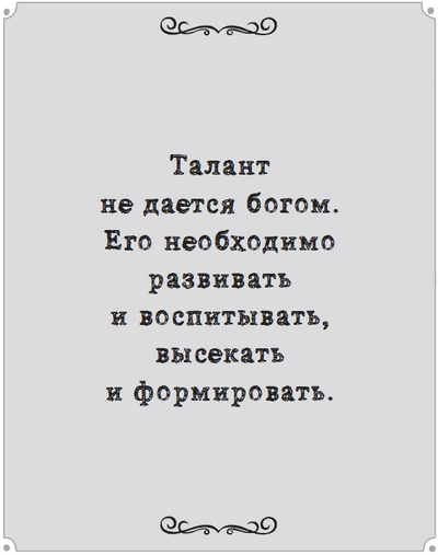 Талант, будь он музыкальным или спортивным, не является врожденным. Его воспитывают. Это верно и для Моцарта, и для Тайгера Вудса; как утверждает Джефф Колвин в книге «Талант ни при чем! Что на самом деле отличает выдающихся людей?», ни один из них не пришел в этот мир сверходаренным, играя на пианино или проходя фервей. Их обоих развивали родители (настырные?), заставляя упражняться часами. В точности так же Пеле, Марадона и Месси не родились с мячом у ног10.