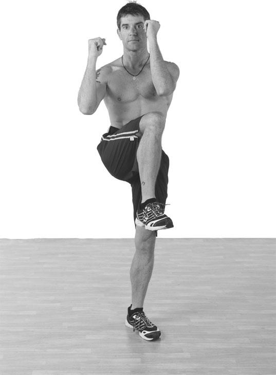3. Повторите с правым коленом и левым локтем. Переход с ноги на ногу упростится, если толкнуться опорной ногой.