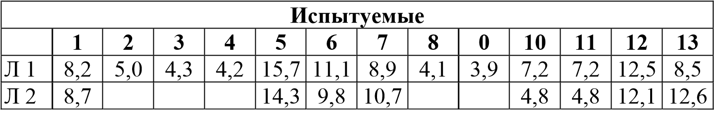 Таблица 4.1 Уровень лактата (ммоль/л) у 13 циклокроссеров