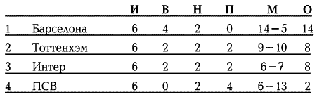 Так, «Барселона» без особых проблем выиграла группу «В», а вот «Тоттенхэм» и «Интер» разделил лишь один забитый мяч во всех смыслах — и по общему числу забитых, и по личным встречам (1:2 г, 1:0 д). А ведь если бы вальяжная «Барселона» не позволила лондонцам в последнем туре отыграться на «Камп Ноу» (1:1 с голом Лукаса Моуры на 85-й минуте), а «Интер» сумел бы переиграть дома безнадежный ПСВ (получилось 1:1), то мы бы никаких «Шпор» по итогам сезона не нахваливали. Бог мой, чего мы могли лишиться!