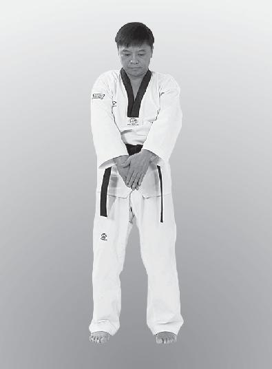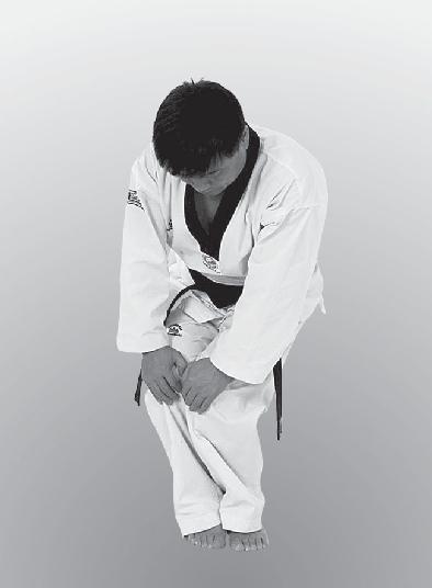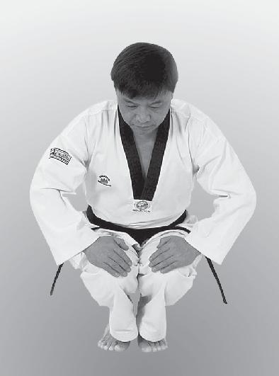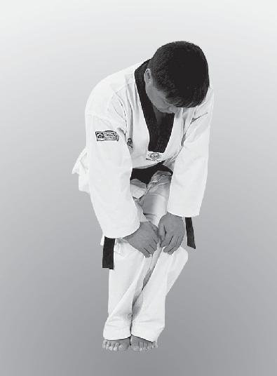 Техника выполнения: примите исходное положение – ноги вместе, стопы соединены, туловище наклонено вперед, спина прямая, руки расположены на коленях.