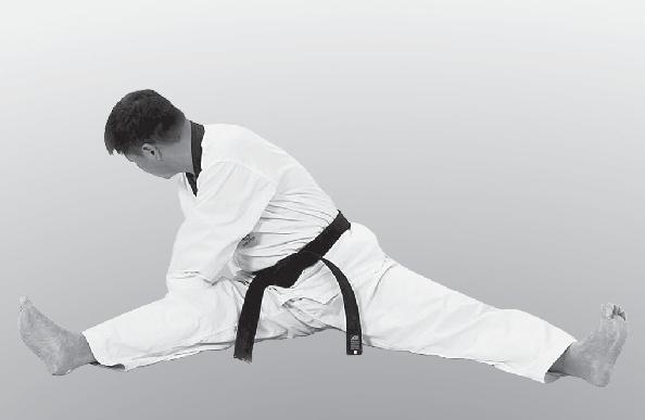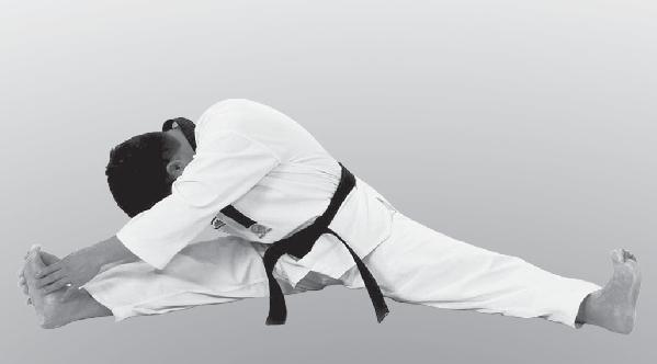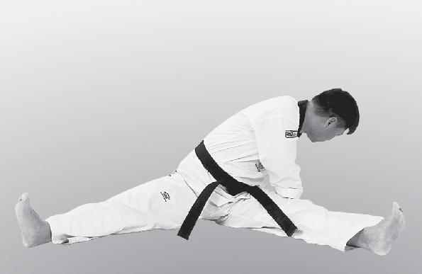Из исходного положения, упираясь руками в поверхность, медленно опускайте таз вниз, до положения «поперечный шпагат». В максимально низкой для вас точке, выполните энергичные пружинящие покачивания таза вниз. Затем опустите ягодицы на поверхность и широко разведите ноги в стороны, расслабьте паховые мышцы и мышцы задней, передней и внутренней поверхности бедер энергичными похлопываниями кулаками по мышцам бедер. Из этого положения выполните пружинящие наклоны туловища сначала к правой и левой ноге, затем слегка разворачивая туловище, наклоны за правой и левой ногой. Наклоны к ногам выполняйте в среднем темпе с постепенным увеличением амплитуды движений. Количество повторений 15-20 раз.