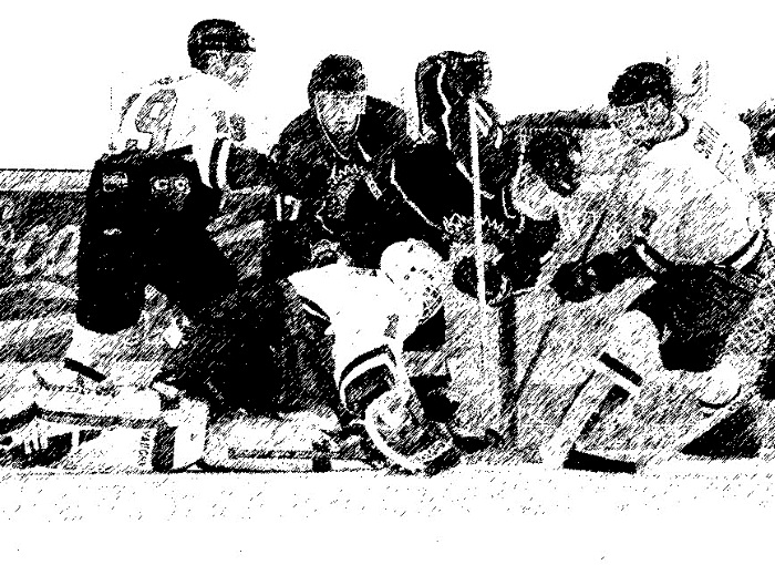 Тренеры часто упоминают точку «тройной угрозы», и мы не раз говорили о ней в этой книге. Когда атакующий игрок завладел шайбой, он обязательно должен удерживать ее у бедра со стороны ведущей руки, что дает ему возможность выполнить пас, совершить бросок или наступление на защитника. Шайба в точке «тройной угрозы» приводит противника в замешательство: он не видит шайбу и не знает, что предпринять. Все эти тактические приемы были не раз разыграны в ходе многочисленных отработанных и спланированных игровых эпизодов, которые мы сейчас и рассмотрим.