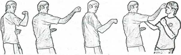 Подобная техника удара также широко используется в вин чунь. Большая часть ударов вне зависимости от ударной части выполняется по этой технике, что свидетельствует об определенном уровне мастерства. Яркими примерами могут служить удары по полукруговым траекториям от локтя или даже только от кисти кулаком, фалангами пальцев. Траектории подобных ударов очень различны, на рис. 4.15 показаны основные возможные выбросы кулака.