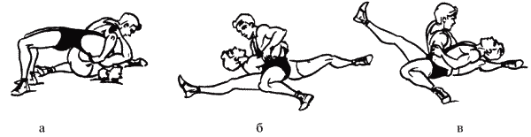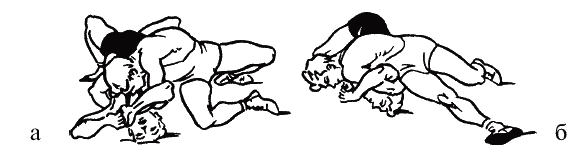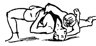Перекаты снизу против удержания сбоку (рис. 1.84, 1.85) проводятся борцом, находящимся в положении моста против находящегося вверху противника в следующих положениях:
