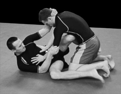 Свип 1. Вы закрыли гард на талии противника, и он сделал ошибку, поставив свои руки на ковер. Вам нужно не мешкая поднять корпус наискось, опираясь на локоть одной руки, и прихватывая руку противника своей другой рукой, а затем расцепить гард и подбив тазом его корпус, закрутить захваченную руку вокруг себя, тем самым, переходя в позицию маунт (рис. 329—333). Здесь нужно следить за синхронностью исполнения подбива тазом и закручивания руки. Как вариант, этот свип может исполняться, когда ваш противник в гарде сидит на коленях, откинув корпус назад. Здесь все выполняется аналогично предыдущему варианту, только ваша рука, которая захватывала руку, которой ваш партнер опирался о ковер, идет наискосок по диагонали ему за спину, чтобы пресечь возможную попытку опереться рукой о ковер.