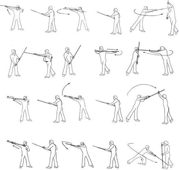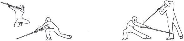 Круговые удары и защиты уходом вверх (прыжком) и вниз