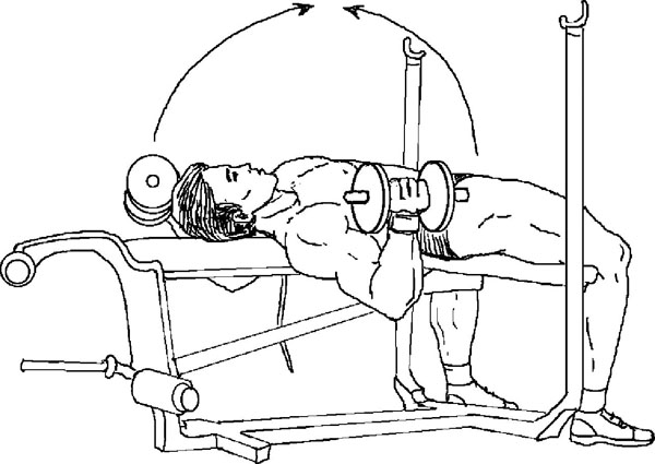 Разведение рук через стороны на наклонной скамье