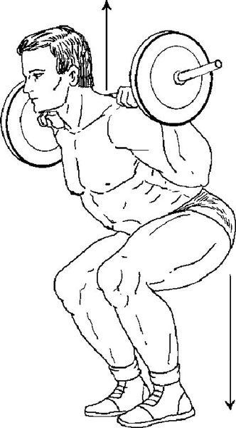 Упражнение 1. Приседание со штангой (см. упражнение 5 из комплекса № 1).
