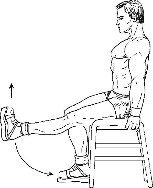 Упражнение 2. Выпрямление ног, сидя на специальном устройстве.