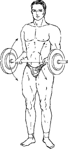 Упражнение 9. Поднимание штанги вперед.