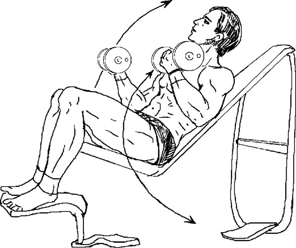 Сгибание рук на наклонной скамье