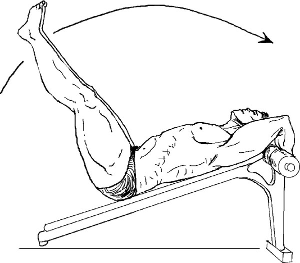 Упражнение 14. Подъем ног на наклонной скамье.