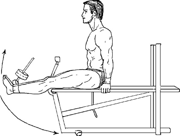 Выпрямление ног, сидя на специальном устройстве