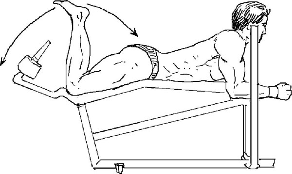 Сгибание ног, лежа на специальном устройстве