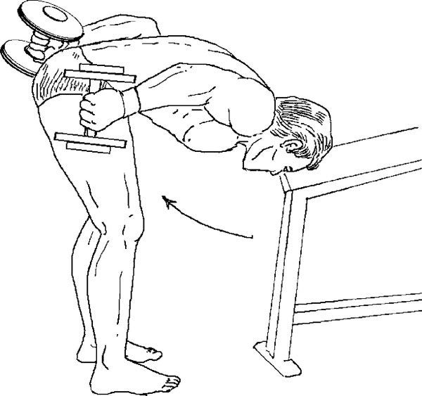 Разведение рук с гантелями в наклоне