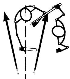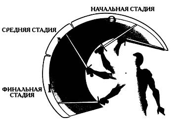 Таким образом, опора разгоняется ступенчато, наслаивая и аккумулируя импульсы в одно движение, которое завершается движением бьющего элемента.