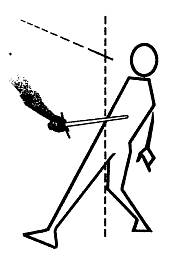 Если вы движетесь от атакующего, то остается вероятность попасть в плоскость удара в средней и последней его стадии (под самый кончик оружия). В этом случае максимально разогнанное оружие поражает все, что находится ниже мечевидного отростка грудины.
