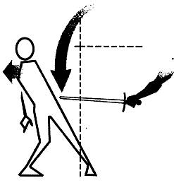 Если вы значительно смещаетесь вбок от задуманной противником точки (плоскости), то удар может пройти мимо. Правда, отклонив голову и торс, невозможно быстро убрать из плоскости удара тазовый пояс и ноги. В этом случае максимально разогнанное (в последней фазе движения) оружие поражает область подола от микиток до щиколоток.