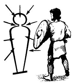 При этом также необходимо прикрывать уязвимые участки оружием или щитом.