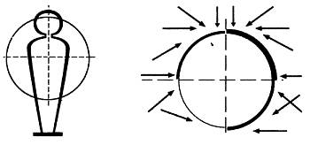 Чаще всего это действия партнера, работающего в той же учебной схеме. Все происходит по формуле: вас бьют так — вы отвечаете эдак. В результате действия носят скупо регламентированный характер. В реальном же бою атаки достаточно хаотичны, так как противники весьма разнообразны и по мышлению, и по стилю. Их действия вряд ли будут строиться по строгим, изученным вами догмам, и удары будут наноситься не по канонической траектории, а из областей в 50–70 см. Поэтому гораздо целесообразней строить свои действия, учитывая наиболее вероятные секторы атаки.