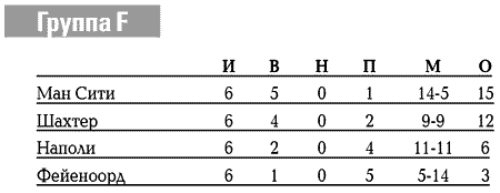 Вернувшийся как чемпион в групповой турнир «Шахтер» впервые встретился с «Ман Сити» и не разочаровался — расклад сыграл в пользу горняков, и три очка в последнем туре с немотивированным представителем (не чемпионом!) Англии был благополучно добыты. Ключевую роль сыграла харьковская (переехали на Восток!) победа дончан в первом же туре против «Наполи». Наставник итальянцев Маурицио Сарри недооценил соперника, выставив не всех основных, и опомнился, уже когда горел 0:2. Всё, что удалось неаполитанцам — сократить разрыв в счете. Конечно, еще нужно было надрать холку «Фейеноорду», но и с этой задачей «Шахтер» благополучно справился. Чистый выход!