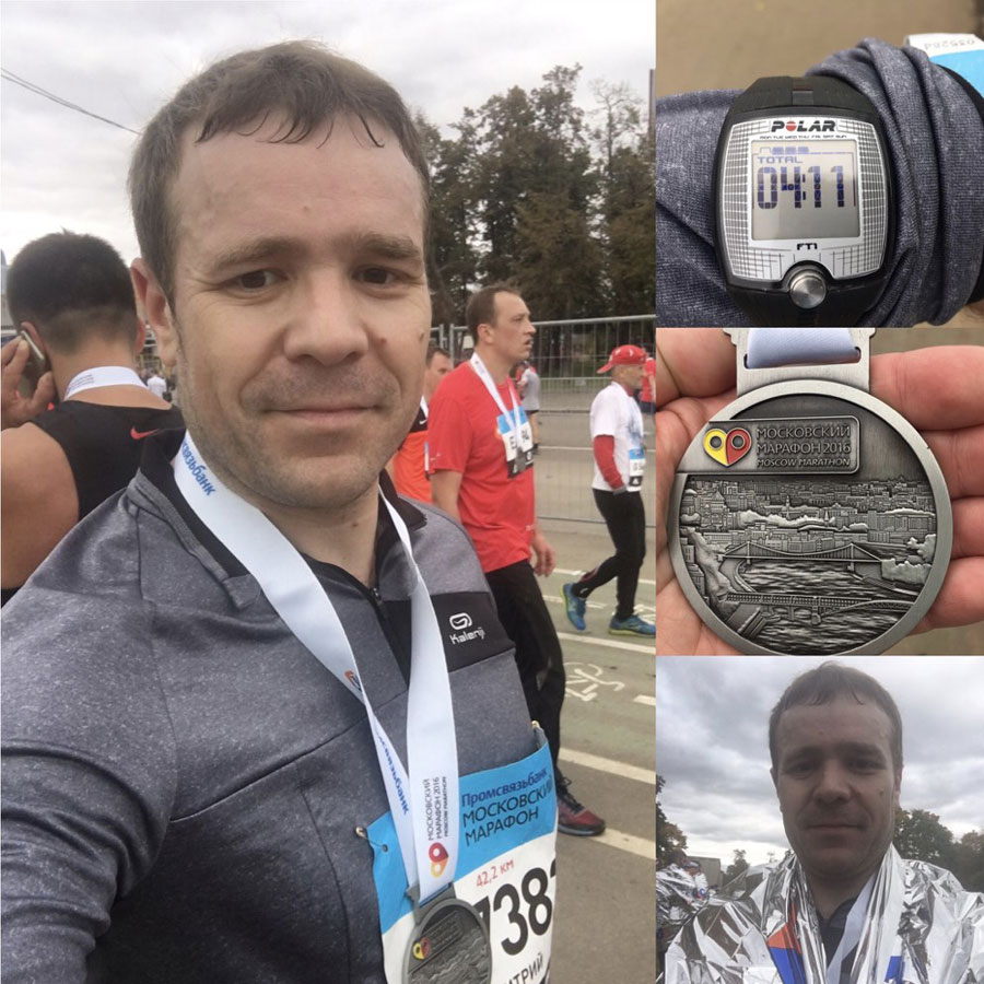 Впереди оставались три самых трудных километра трассы. Кареты скорой помощи были на каждом километре, но я уже практически ничего не замечал и вообще не смотрел по сторонам. Я краем глаза поглядывал на часы. В какой-то момент показалось, что, чем черт не шутит, уложусь в 4 часа! Но нет, это было невозможно. Холодный расчет показывал практически точное время финиша. Последние два километра бежал уже по территории Олимпийского комплекса Лужников. Эмоции переполняли. Поддержка трибун, приближающиеся звуки мегафонов на финише и внутренний голос, все громче и громче напоминающий мне о том, что я, черт побери, сделал это!