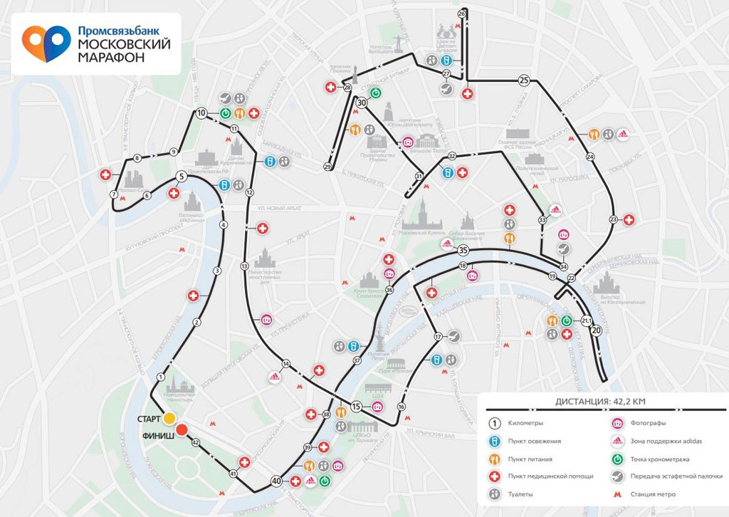 Еще немного о тактике. Когда перед забегом я изучал трассу, то поделил ее на три условных отрезка: первый плоский – 22 км по набережным и Садовому до Яузских ворот, второй холмистый – 12 км по Бульварному и Тверской, а третий отрезок 8 км – снова плоский, по набережным к финишу.