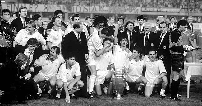 Но к блистательному «Мехелену», который и при Руде Кроле, и при Вилфреде ван Хофе продолжал оставаться опасным соперником для всех, мы еще вернемся. Дело в том, что в 1/8 финала образовался очередной досрочный финал в виде пары «Реал»-«Милан», и обойти такое вниманием мы не имеем права.