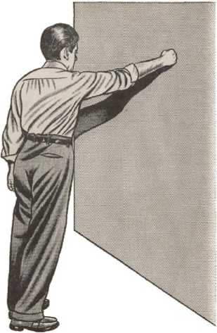 Держа руку выпрямленной, позволь своему телу качнуться вперед - не двигаясь с места и оставив пятки вместе, до тех пор, пока твой кулак не упрется в стену. Позволь ему держать вес твоего тела (рис. 6).