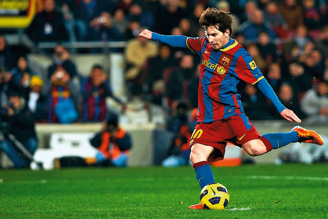 Максимальная концентрация не раз помогала Месси добиваться лучших результатов. На фото – Лео забивает пенальти «Расингу» (Сантандер) в матче Ла Лиги, 22 января 2011 года