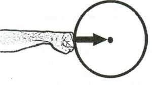 Для понимания того, как влияет вектор удара на тело, рассмотрим физическую аналогию. Возьмем флюгер, который имеет прямоугольную форму и определенную ось вращения (рис. 1.24). Далее будем наносить удары в различные части флюгера. Достаточно очевидны следующие закономерности. Чем дальше от опоры (оси вращения) приходится удар по флюгеру, тем сильнее будет скорость вращения флюгера. При этом имеет значение и направление удара. Если удар направлен в опору, то сила вращения будет минимальна, т.е. удар будет встречать жесткость опоры и передавать свой ударный импульс этой жесткой опоре. Если же удар направлен мимо опоры, то сила вращения флюгера будет максимальной, т.е. весь ударный импульс будет гаситься во вращении флюгера, т.е. меньшая часть ударного импульса будет передана в опору.