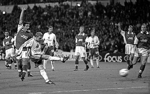 «Арсенал» предсказуемо справился с «Панатинаикосом» и вышел на двойное противостояние с «Динамо». Ну кто не помнит лондонский матч, действительно очень сильный со стороны украинского чемпиона, тем не менее клонившийся к нашему минимальному поражению (Бергкамп с подачи Диксона)?! К счастью, на последних секундах проникающая в прямом смысле этого эпитета передача Валентина Белькевича нашла Сергея Реброва, тот не промахнулся, и стадион «Хайбери» резко показался домом родным! Жаль, что мы на нем больше не играли и не сыграем никогда…