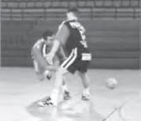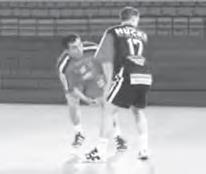 Рис. 18. Бросок в опорном положении хлестом сбоку с наклоном туловища, мяч прошел между ногами защитника