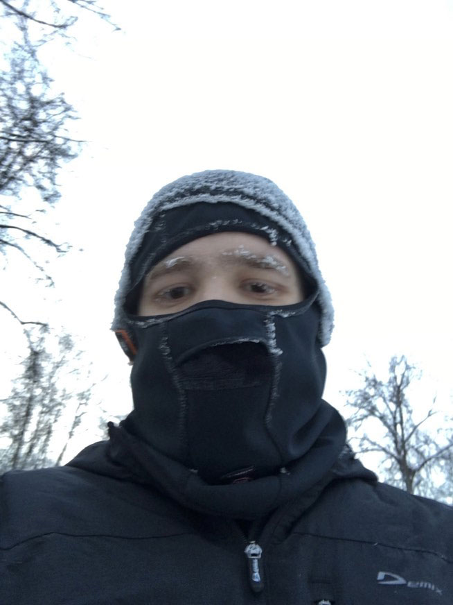 Когда 24 января 2016 года я бежал свою уже четвертую полумарафонскую дистанцию за месяц, на улице было довольно холодно, градусов 17–19 ниже нуля. Поэтому я бежал в специальной горнолыжной маске. Но все равно дышать было холодно.