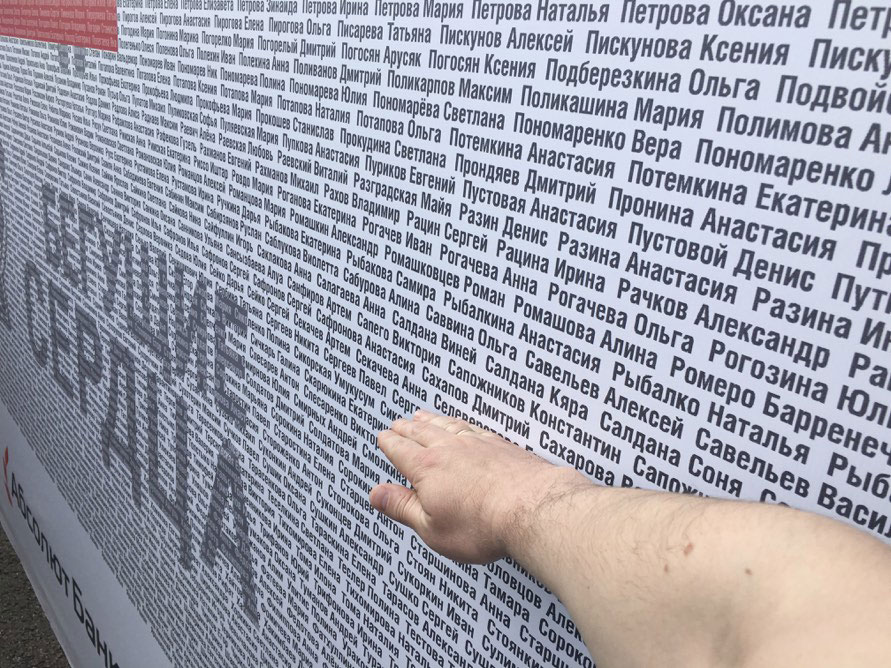 Приехав на старт заранее, я был поражен масштабом организации забега! Огромная площадь перед МГУ со стороны смотровой площадки на Воробьевых горах была превращена в беговой городок с большим количеством шатров, раздевалок, сценой, стендами спонсоров. С особым чувством отыскал и свою фамилию на таком вот щите со списком всех участников забега: