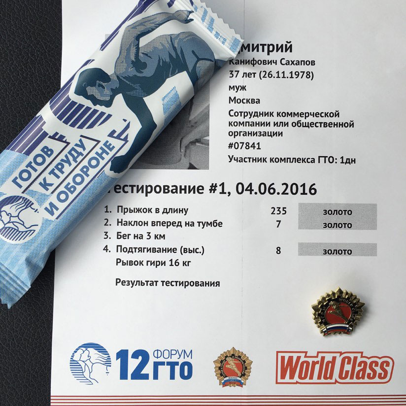 Так получилось, что раньше я никогда в жизни не сдавал ГТО. Хотя в школе учился еще при Советском Союзе. Взглянул на нормативы, и показалось, что это не должно быть сложно. Из всех дисциплин я больше всего переживал за прыжки в длину, а меньше всего беспокоился за подтягивания на перекладине. К сдаче нормативов ГТО я не готовился, сдавал их с ходу. Поэтому был сильно удивлен, когда умудрился с места прыгнуть аж на 2 метра 35 см! В результате по прыжкам в длину с места я выполнил норматив на «золото», с запасом на целых 10 или 15 см. Все-таки беговая подготовка сказывалась положительно – ноги у меня стали гораздо сильнее! А вот с подтягиваниями чуть не вышел казус. Я еле-еле вытянул восемь раз, минимальное количество на «золото». Хорошо еще, что девушка-судья оказалась не очень строгой и последнее подтягивание мне все-таки засчитала. Хотя я бы на ее месте такое, пожалуй, не засчитывал.