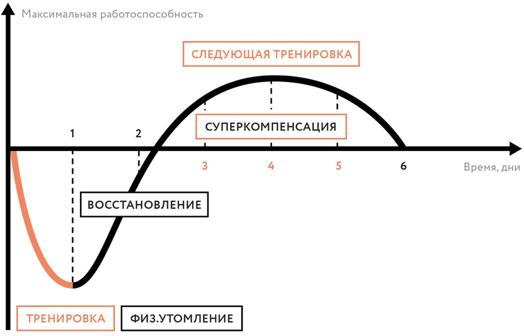 Состояние организма ухудшается с каждой новой тренировкой. Означает это лишь одно – человек систематически не успевает восстановиться между тренировками. Поэтому вместо улучшения физической формы в результате суперкомпенсации происходит ее спад.