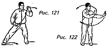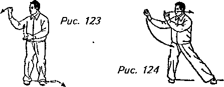 до тех пор, пока она не окажется прямо напротив левого плеча, внутренняя сторона кисти при этом повернута к корпусу. Одновременно с этим придвиньте правую стопу к левой и удерживайте их параллельно на расстоянии 4—5 дюймов (10—12 см) друг от друга. Взгляд направлен на правую руку (рис. 121, 122).